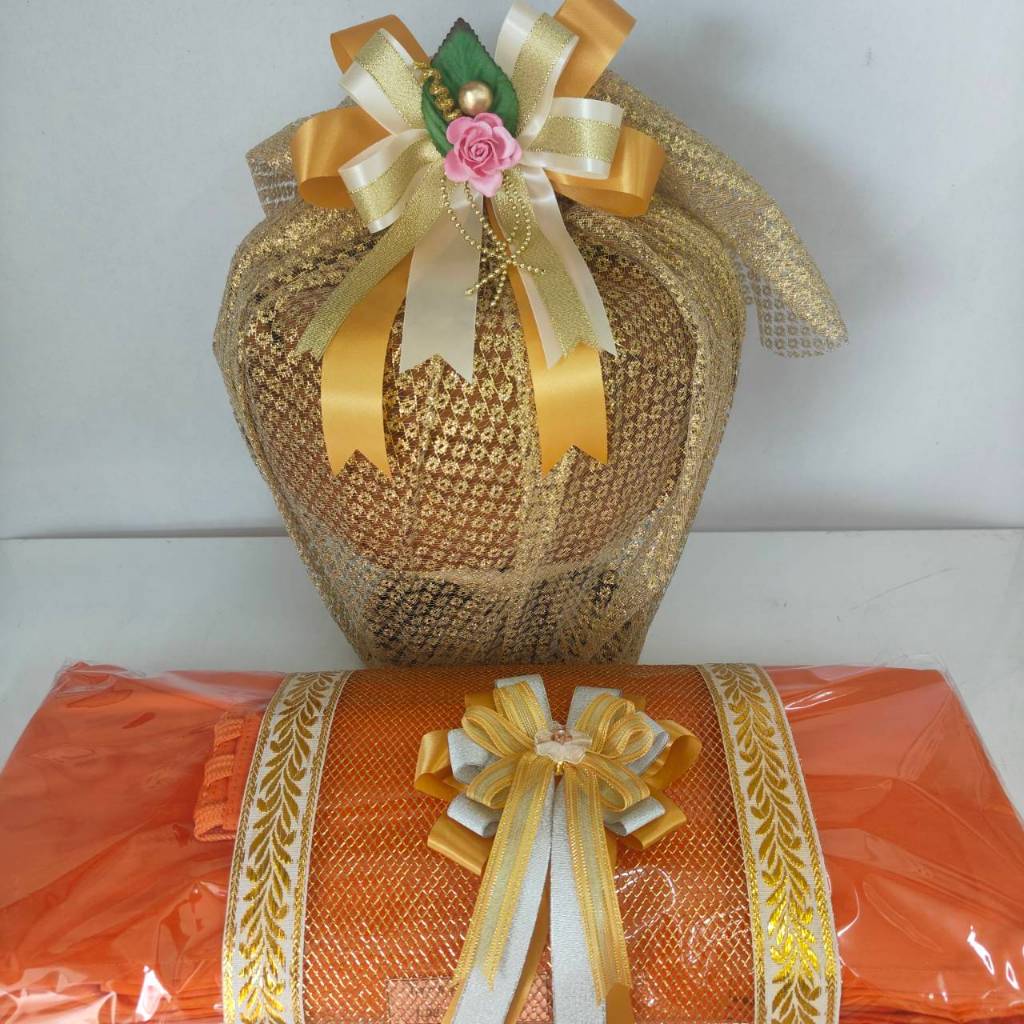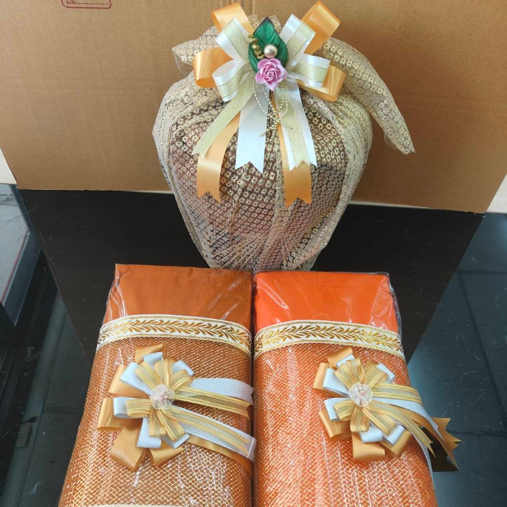 ผ้าไตรครอง มี2 สีให้เลือก คือสีส้มทอง และ สีราชนิยม(พระราชทาน)